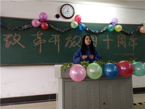 刘慧灵同学通过介绍邓小平开启中国改革开放伟业的事迹,真实地展现了一代伟人崇高的精神风范。王子衿同学通过讲述自己父母和爷爷奶奶的故事,将改革开放前后生活作鲜明对比,他说道,如今的生活来之不易,我们应该倍加珍惜。
