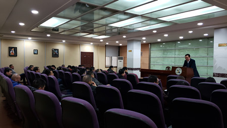 本网讯 2月26日下午,后勤处在办公楼一会议室召开新学期职工大会,安排部署2019年后勤重点工作。会议由后勤处处长王世峰主持,全体后勤职工参加会议,主管后勤工作副校长张志勇讲话。