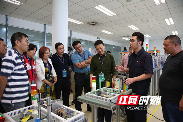 “在TGA实训室,我们接受的是项目式教学。在企业老师的指导下,2-4名同学一组,完成自动化生产线项目的装调,这既考验了我们的专业水平,又培养了团队协作、项目管理、协调沟通等能力。”在博世长沙公司双元制学徒培训中心TGA,该校机电一体化技术专业2018届毕业生袁汝情一边熟练操作模拟生产线设备,一边解说传感器技术、电气控制技术和气动技术。