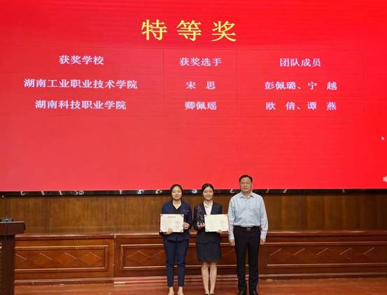 湖南生物机电职业技术学院史明清校长为宋思老师(中)颁奖