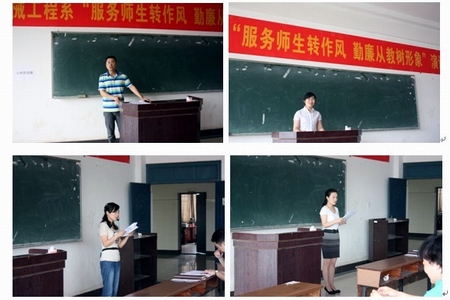 据悉,为深入贯彻落实科学发展观,认真落实中央纪委二次全会及全省教育系统党风廉政建设会议精神,围绕学院中心工作,加强作风建设,进一步推进廉洁文化进校园,学院党委、纪委组织开展了“服务师生转作风,勤廉从教树形象”演讲比赛活动。自五月底开始,全院各党总支纷纷围绕“服务师生转作风 勤廉从教树形象”主题开展演讲比赛,充分展现着我院教职员工蓬勃向上的精神风貌和求真务实的工作态度,不少廉洁勤教、服务师生、感人至深的优秀事迹得到了宣传和学习。