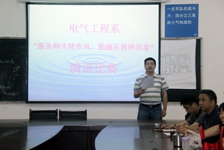 电气工程系“服务师生转作风 勤廉从教树形象”演讲比赛现场 刘峥老师获得一等奖