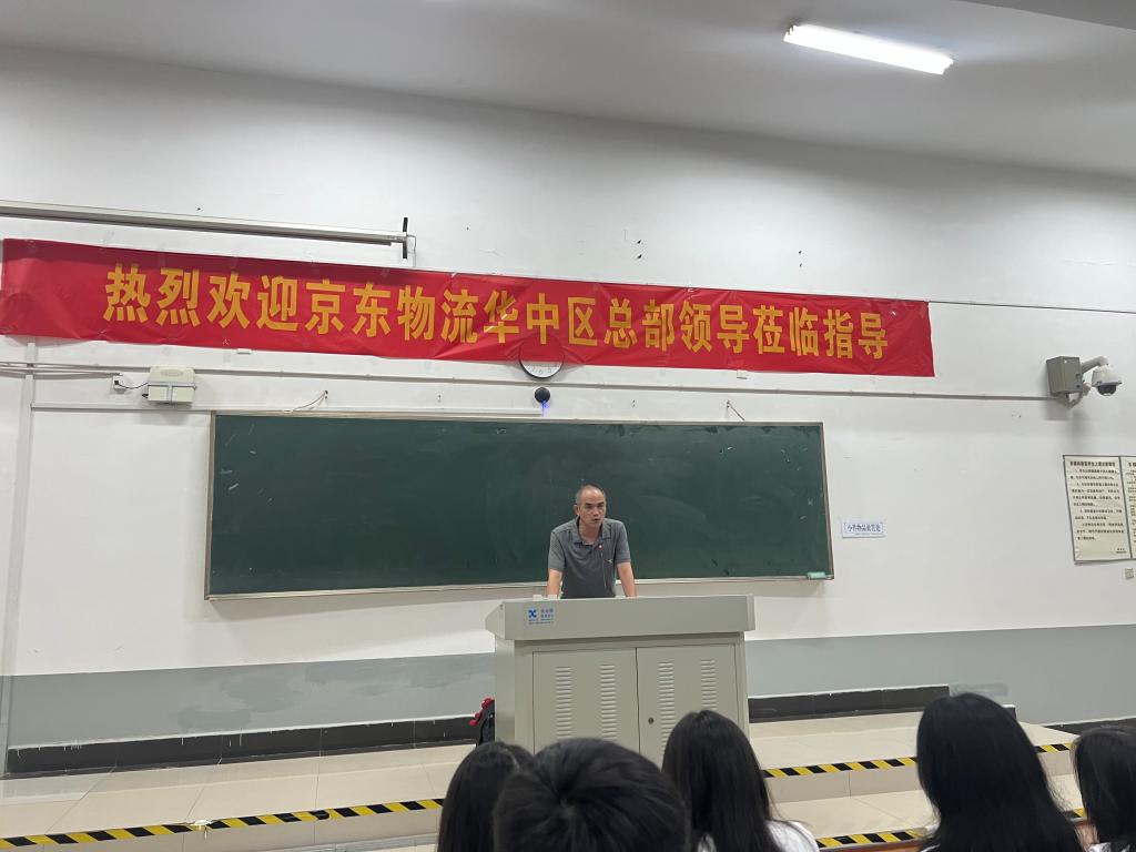 首先,湖北京邦达物流科技有限公司华中校企合作负责人陈骏飞通过视频宣传、PPT展示以及与学生面对面交流等方式,介绍了京东的发展历程、业务情况、员工成长路径,并从就业形势、行业发展、学生职业规划、“京东新锐之星”等方面深入浅出的介绍了京东特色班的培养模式、课程内容、实践计划等情况。