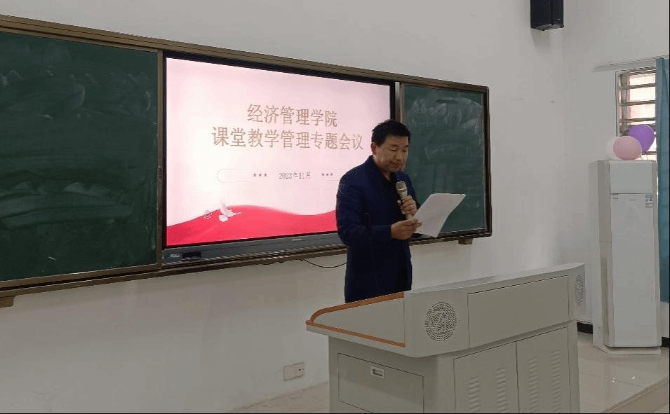 为强化经济管理学院课堂教学管理,加强学院教风建设。经济管理学院于2023年11月7日下午4点,在博文楼5117室召开了加强课堂教学管理规范的专题会议。会议由谢丁峰副院长主持,经济管理学院全体教职工参加了本次会议。