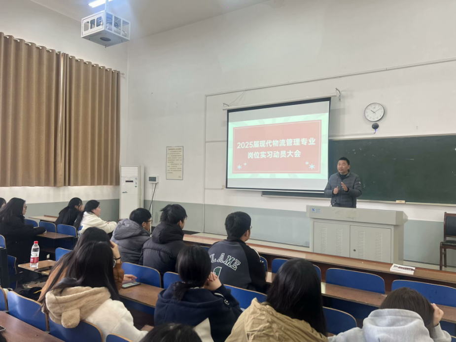 2024年12月18日上午10:00,经济管理学院现代物流管理教研室在2202A教室举办了2025年应届生岗位实习动员大会暨毕业事项说明会。此次大会旨在为即将步入职场的2022级学生提供实习指导和毕业相关事宜的详细说明,确保他们能够安全开展岗位实习活动,并顺利过渡到职业生涯的新阶段。