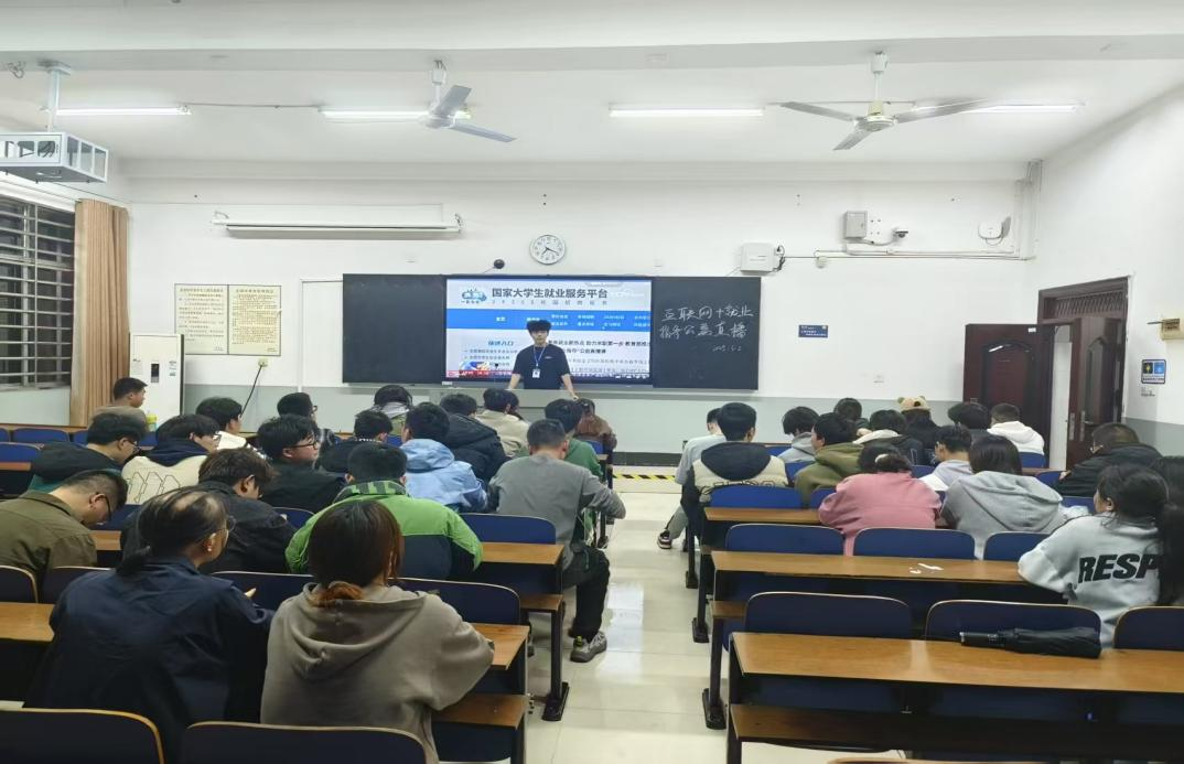 在知行楼2111教室,机械工程学院近百名学生齐聚一堂,通过线上平台观看了这场直播。刘慧老师结合多年生涯教育研究经验,以“识局、明志、谋略、正念”为核心框架,为大学生们在职业探索的迷雾中点亮了一盏明灯。她指出,在多元化、快速变化的就业环境中,大学生应具备在不确定性中寻找确定性的能力,通过科学规划,不断提升自身核心竞争力。