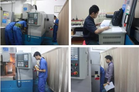 各参赛队均有三名选手以团队形式参赛。选手们团结协作、精神饱满、全神转注地投入竞赛。选手必须在5个小时内,根据竞赛题目的具体要求,利用机床说明书、电气原理图、数控系统连接说明书、伺服驱动装置使用说明书等资料,以现场操作的方式,按照正确的操作步骤,使用专用量具、专用工装、工具、刀具等,完成数控车床的机床电气控制线路连接,机电联调与故障排除,精度检测与补偿,试切件加工等任务。