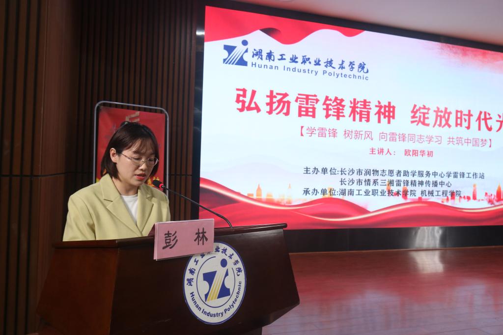 11月12日下午,由长沙市润物志愿者助学服务中心学雷锋工作站和长沙市情系三湘雷锋精神传播中心主办,机械工程学院和机械工程学院易班分站承办的“弘扬雷锋精神,绽放时代光芒”弘扬雷锋精神主题讲座在图书馆报告厅举行。原九游·官方网站副校长邓建国,长沙市教育基金会党支部书记、常务副理事长欧阳华初,长沙市润物志愿者助学服务中心理事长李应智,机械工程学院党总支副书记彭林,以及助学服务中心的志愿者莅临现场,我校300余名学生志愿者代表参加活动,活动由机械工程学院团总支书记杨晶主持。