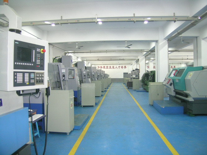 我院数控实训基地早在1996年就已经开始了建设,通过多年的努力和完善,于2006年建成了国家级的数控实训基地。该基地占地面积为1500平方米,由“三室一中心”组成:一是数控原理实训室。以掌握数控技术基本原理为主,现已建成高标准数控系统原理实训室,拥有华中、法那克、西门子等主流数控系统。该室可进行数控系统连调,故障诊断等室训。二是数控线切割电火花实训室。拥有电火花成型机4台,线切割机床5台,以掌握数控电加工机床的编程与操作,可训练模具制造加工的实习实训。三是数控编程实训室。拥有计算机150台,主要进行数控编程、工业造型及自动编程、模似仿真数控加工。为真实加工打下基础。四是数控加工中心。配备有多种目前主流数控系统的数控车床、数控铣床、加工中心32台。全部为工业型机床,可进行真实工件加工,培训数控机床操作与加工,掌握数控加工工艺。 “三室一中心”的建成,为数控技术专业及机电类专业群构建了技术型教学体系、为创新人才培养模式提供了条件,为数控技术的推广应用建立了示范窗口。数控基地不拘一格开展培训。如为农村劳动力转移培训数控加工操作工800多名;培养中职“双师型”教师500多名。为企业工人再教育培训年培训600人次,为各职业院校培训学生年培训1800人次。为企业加工制造可创产值880万元。从而为地方经济发展提供了技术支撑。