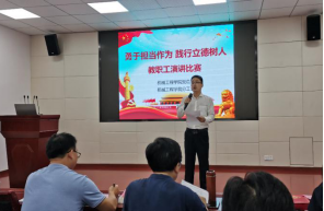 为进一步深入学习贯彻党的十九大精神和习近平新时代中国特色社会主义思想,充分展示我院广大教职工教书育人、为人师表的职业情操和勇于担当作风、昂扬向上的精神风貌,机械工程学院党总支、分工会联合于202098日下午在机械楼报告厅举办“勇于担当作为 践行立德树人”主题演讲比赛。联系我院校领导董建国副校长亲临指导。全院70余名教职工一同观看了比赛。