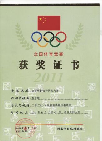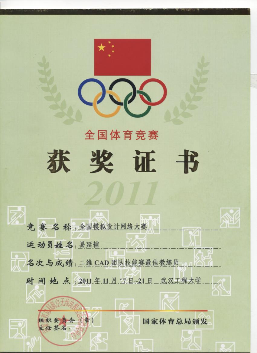 易延辅老师获2011年全国CAD/CAM大赛 最佳教练员奖 | |
