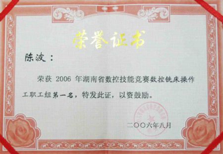 陈波老师获2006年湖南省数控技能大赛 第一名 | |