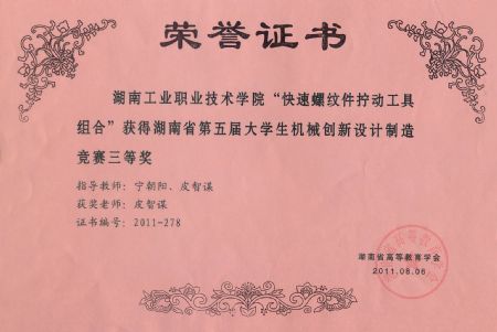 任成高与宁朝阳老师获第三届湖南省大学生创新设计大赛指导奖 | |