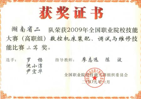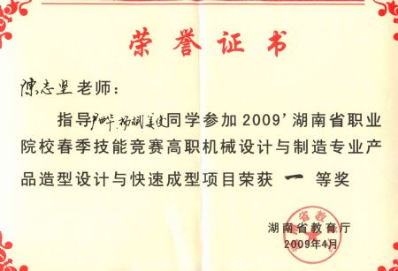 陈志坚老师获2009年湖南数控技能大赛 指导奖 | |