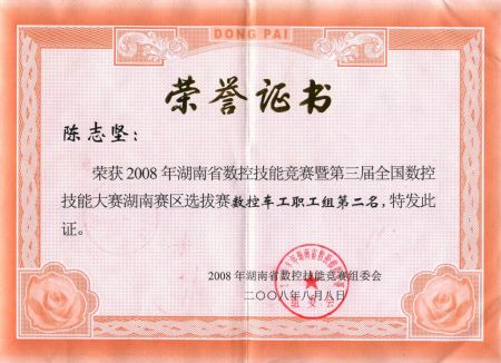 陈志坚老师获2008年湖南省数控技能大赛 第二名 | |