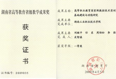 高等职业教育国家级实训基地建设与研究 湖南省教学成果一等奖 | |