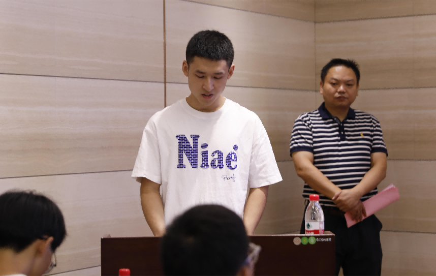 机设2020-1班田文超代表全体学生发言。首先代表全体同学表达了对母校的感恩,感谢母校提供了最优质教育资源,使他们在专业知识、操作技能、后勤保障等方面,收获满满、幸福满满;同时他代表全体同学决心,回到湖南科技大学后,将锚定目标、继续前行;在以后的工作中,将不忘母校教诲,牢记教师光荣使命,教书育人。