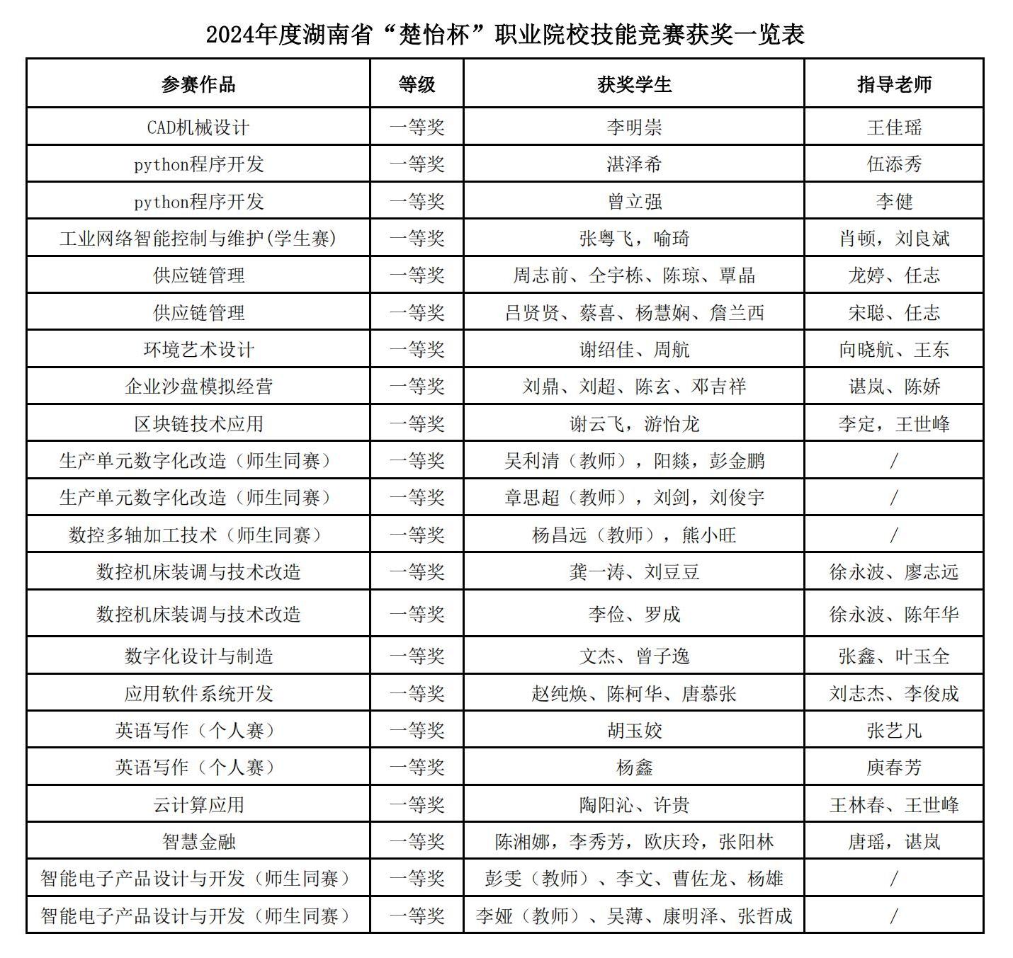 2024年度“楚怡杯”湖南省职业院校技能竞赛圆满落幕。根据《关于举办2024年度“楚怡杯”湖南省职业院校技能竞赛的通知》(湘教通〔2023〕339号)文件精神,本次大赛共吸引全省95所高职学校(含技工院校)11283名(含教师477人)选手参加了21个专业大类102个学生技能竞赛赛项、10个师生同赛和12个教师技能竞赛赛项的比赛,参赛总人数14768人。