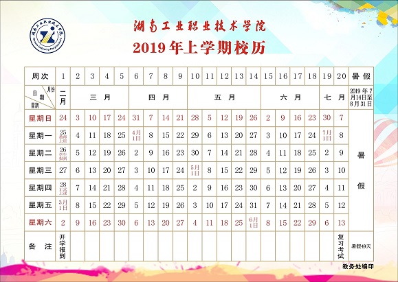 2019年上学期校历