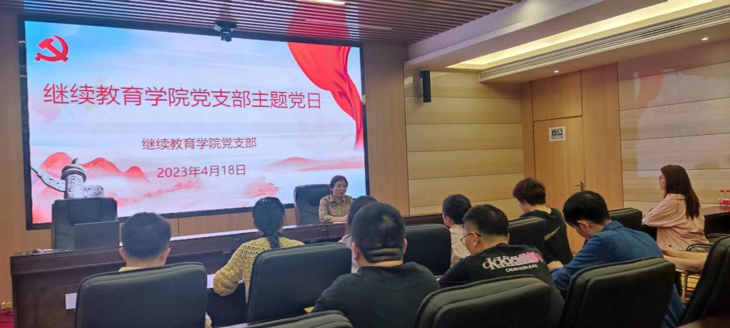 4月18日下午继续教育学院党支部在第二会议室开展了“贯彻二十大精神 持续教师作风建设”为主题的“党支部主题党日”活动。活动由党支部书记龙华主持,全体党员、入党积极分子和群众代表参加。