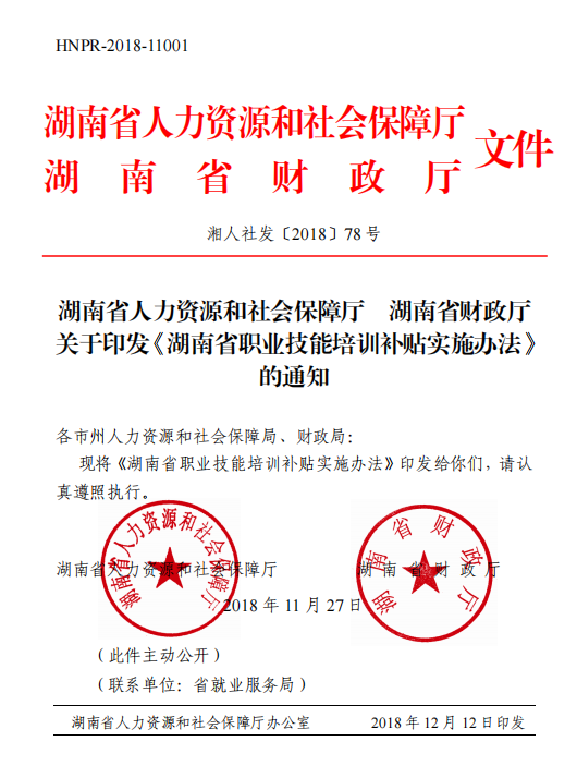 《湖南省职业技能培训补贴实施办法》湘人社发【2018】78号.pdf