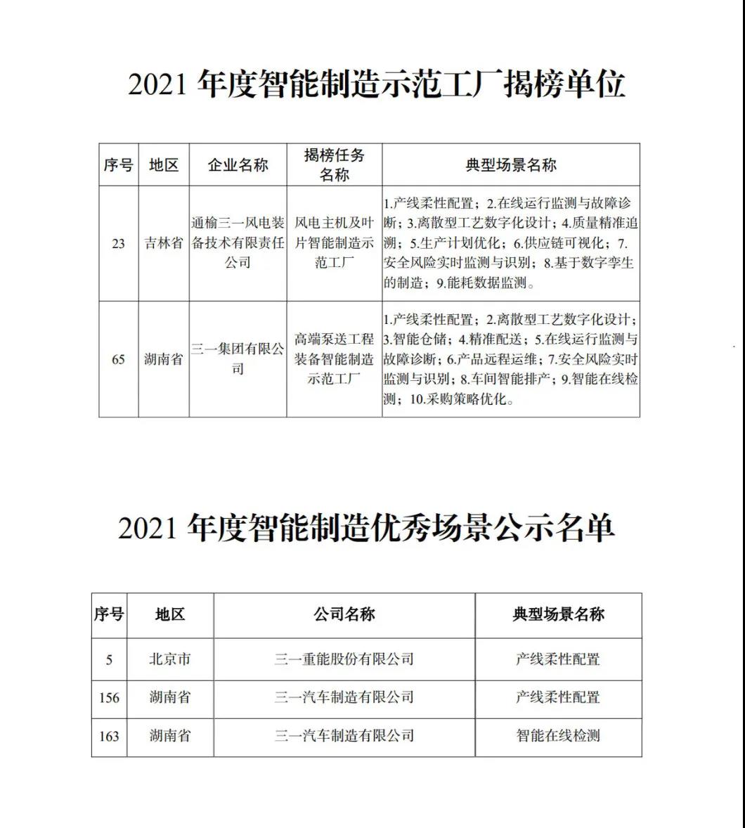 此次,三一成功揭榜“高端泵送工程装备智能制造示范工厂”、“风电主机及叶片智能制造示范工厂”两大任务,一次摘得两大国家级智能制造试点示范工厂荣誉,充分展现了三一数字化转型战略的显著成效和领先优势。