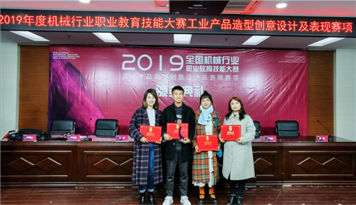 本网讯 12月4日至6日,2019年全国机械行业职业教育技能大赛工业产品造型创意设计及表现赛项在常州举行。经过激烈角逐,湖南工院工业设计与艺术学院工业设计专业2017级学生张晓柯、段池两名同学脱颖而出,获得团体一等奖,黄慧、江果燕获得“优秀指导老师”称号。