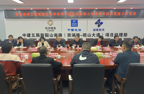 在随后举行的党建工作交流会上,刘建湘对中建五局土木工程有限公司新韶山南路项目部的党建文化阵地建设表示赞赏,并介绍了学校办学历史、发展历程、基本概况和近年发展成果,着重介绍了九游·官方网站“专业建在产业链上,支部建在实训车间”的党建工作特色。他期待校企通过建立“党建联盟机制”加强深层次交流与合作,以订单培养、企业家进校园、能工巧匠兼职辅导员、搭建文体活动交流平台等多种形式共同育人,培养德智体美劳全面发展的高技术技能型人才,共同助力“三高四新”战略实施,奋力建设现代化新湖南。