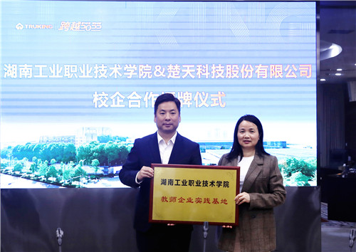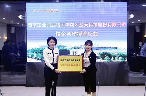 会上举行了校企合作授牌仪式,党委书记刘建湘、副校长谢希钢、组织人事处处长黄敏分别代表学校向企业授牌“实习就业基地”“教师企业实践基地”“‘双师型’教师培养培训基地”。