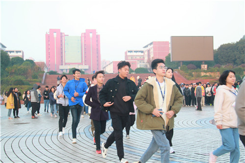 本网讯 “第十三届阳光体育晨跑活动,开跑!”12月3日清晨,学校新纪元广场上,随着体育艺术部部长周文一声口令,同学们以班级为单位,沿着学校办公楼—鹤鸣山—图书馆—教学楼—新纪元广场路线有序奔跑前进。我校第十三届阳光体育晨跑活动正式开幕。