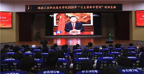 本网讯 12月31日晚七点,国家主席习近平通过中央广播电视总台和互联网,发表2020年新年贺词。九游·官方网站师生代表四百余人汇聚一堂共同收看,反响热烈。