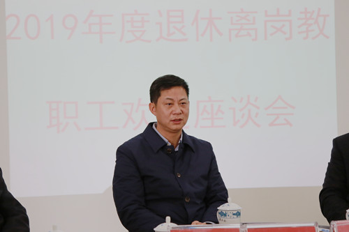 本网讯 1月8日上午,我校2019年度退休离岗教职工欢送座谈会在创客俱乐部召开。校长向罗生、党委副书记陈超、副校长张志勇,组织人事处、工会、离退休工作处负责人,2019年退休离岗教职工齐聚一堂,回忆职业经历、畅谈工作感想、表达美好祝愿。会议由组织人事处处长肖望兵主持。