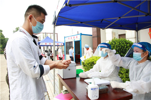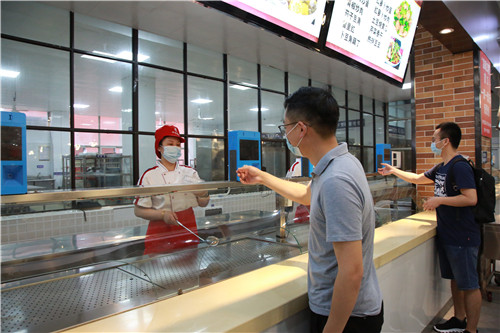 本网讯 “请后面的同学有序、间隔一米排队。”“你酒精过敏吗?请使用免洗手部消毒液。”“你的体温有点异常,目前身体上有什么不适吗?请随我体温复测区休息一会儿,稍后再复测体温。”……