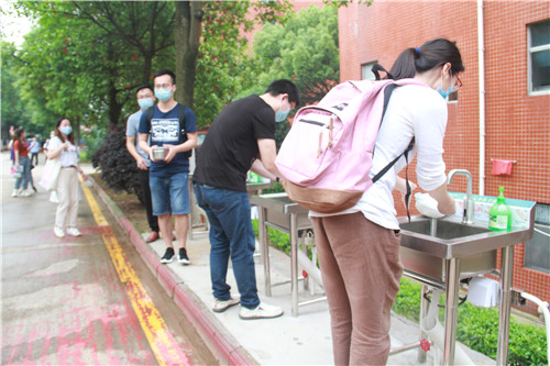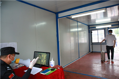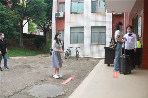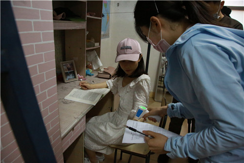 校门口有序排队等候、行李物品及手部消毒、通过测温通道检测体温、身份核验完成报到、进入宿舍楼……此次应急演练主要围绕返校报到入校、宿舍管理、教室上课、就餐管理、异常情况处置等场景,在学校东大门、学生公寓三栋、一号教学楼、二食堂、校医务室等地开展工作流程模拟。对每个场景都分“体温正常身体无异样”“体温异常”“身体不适”等多种情况模拟处置流程,力求做到处理好每一个工作细节。若发现学生体温异常或有乏力、干咳、咽痛等症状时,则迅速启动应急预案。