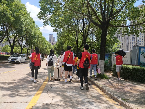 “请大家根据指引排队体温测量。”“学姐我们来帮你搬行李。”校园里四处可见志愿者们忙碌的身影。他们协作工作人员开展体温检测与信息登记工作,帮助毕业生搬运行李。“我希望能够尽自己的力量帮助到更多的人,将工院互帮互助的传统延续下去。大一刚进校园时,当时大二、大三的学长学姐做志愿者给予我们帮助,现在学姐学长们毕业了理应由我们来做志愿者帮助他们。”我校检测2018-1班的陈振超得知学校招志愿者的消息后,立马报了名。连续三天,他坚守在岗位一线。