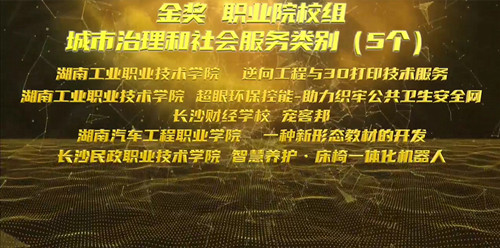 其中,由范念、李书婷、袁鹏飞、何阳、李康完成的《逆向工程与3D打印技术服务》,由谢可欣、邝凯尹、刘坦城、张洪丁、李宇、彭紫婵、储博涵完成的《超眼环保控能助力织牢公共卫生安全网》两个项目夺得了职业院校组城市治理和社会服务类别金奖。