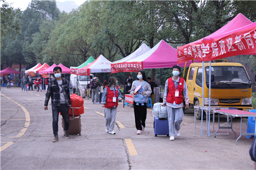 本网讯 10月20日,我校2020级新生报到工作已基本完成,工院迎来新人,新生也将在这里开启新的征程。两天半的迎新工作中,校园内一个个忙碌的身影构成了一道道亮丽的风景线。这些身影中,有在学校门口指挥交通的保安大叔,有维护校园卫生环境的保洁人员,有随处可见的学生志愿者,有迎接新生入住的宿管阿姨,有引导新生融入班集体的学生助教,以及在各迎新报到点登记信息、做好沟通协调工作的教师工作人员。