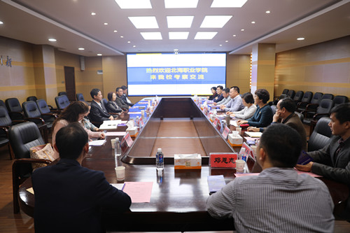 北海职业学院副院长麦齐好及该校教学科研处、计划发展与财务处、教学技术中心、机电工程系、电子信息工程系、经济管理系、文化与传媒系、办公室相关负责人,我校科技处、信息中心、对外合作交流处、教务处相关负责人共同参与交流。