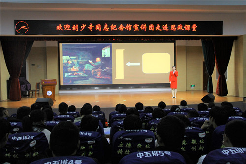 本网讯 11月25日,我校在大学生活动中心组织了一堂特殊的体验式思政课,来自刘少奇同志纪念馆的宣讲员主讲《光辉榜样刘少奇同志的初心与使命》。