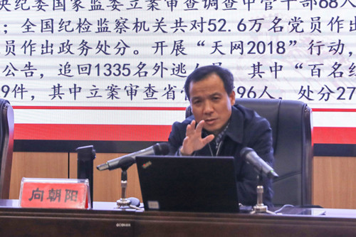 向朝阳从“洞察反腐形势,做识大局的精明人;接受警示教育,做常自省的聪明人;勇于干事创业,做谋发展的高明人;沿袭传统文化,做有修养的文明人”等四个方面为在场的党员干部作了详实而深刻的讲解。他的讲座内容丰富、立意深刻、针对性强,聚焦全面从严治党及反腐败斗争形势,以故事的形式,用生动形象的语言列举了许多教育系统违纪典型案例,用身边人身边事以案释纪,让警示教育起到警钟常鸣作用。