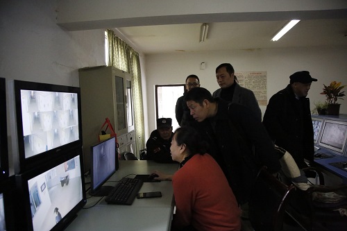 另一组对学校校园环境、图书馆、学生宿舍、食堂、超市、机械楼、汽车楼、消防监控室、监控室等地进行了实地考察。对重点安全部位视频监控和信息存储时间、食堂食品安全和卫生状况、消防设备及器材的完好情况等涉及平安建设方面的情况进行检查。