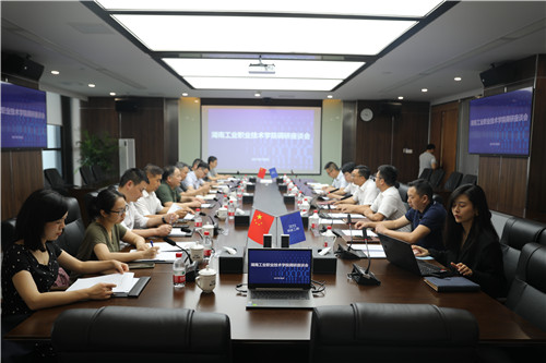 湖南湘江智能科技创新中心有限公司副总经理高培基介绍了公司发展历程、组织架构和近期开展的校企合作工作情况。双方与会人员介绍了各自所负责的工作领域和进展情况,从党建工作、校园文化、人才招聘、实训基地建设、专业技术技能提升、技术研发、课程共建等方面探讨了合作形式。