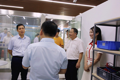 随后,钟登华一行来到数控技术实训中心、智能制造实训中心和工业视觉系统运维校企合作人才培养基地,相关学院负责人、实训教师及合作企业负责人向其汇报了学校校企双元育人情况和具体案例。一直以来,我校紧紧围绕湖南省工程机械世界级产业集群高质量发展需求,深化产教融合、校企合作,建立了以园区为载体、以行业为平台的校企深度合作模式,与湖南省4个国家级园区建立校地合作紧密关系,与区域装备制造类98家企业建立了稳定的校企合作关系。学校牵头的湖南机械装备制造业职教集团是国家首批示范性职教集团培育建设单位;牵头的全国机械行业先进装备制造职教集团,率先开启了联席理事会管理体制改革,充分发挥了行校企多元主体作用。