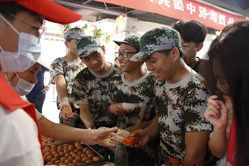 新生领取月饼与鸡蛋
