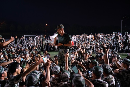 夜晚,不少连队还举行了歌舞表演,新生们和教官一起唱歌、表演才艺,整个田径场充满着欢声笑语。