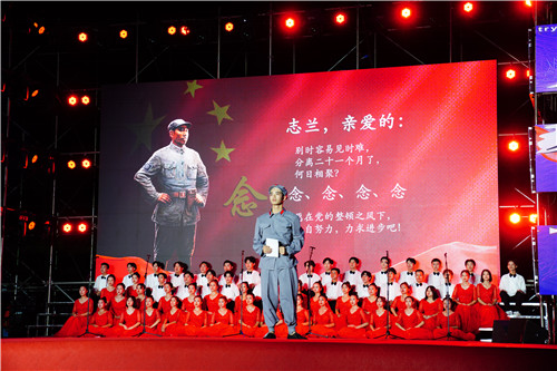 “1921年,一群平均年龄只有28岁的年轻人,预言了100年后的今天。”情景唱《时代之问》开启了晚会第一篇章。“念、念、念、念!一片深情赋予谁?是妻子,是女儿,更是所有劳苦大众,是党,是国家。”红色书信《铁骨柔情真硬汉 一代功勋留太行》带来了八路军在抗日战场上牺牲的最高指挥员——左权将军的一封家书。大学生合唱团合唱《追寻》,在歌声中娓娓道来伟大党的百年奋进路。