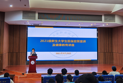 本网讯 9月29日上午,后勤处在图书馆报告厅组织开展2021级新生大学生医保政策宣讲及健康教育讲座,各二级学院老师及新生代表近300人参加了培训学习。