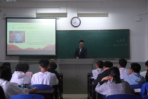“同学们假期都关注了哪些热点问题和事件呢?”“东京奥运会!”“双减政策!”……在1308教室,我校思政部教师刘思宇主讲的《形势与政策》课堂正在顺利进行。他结合所授课程进行提问互动,让新生们自主思考,积极参与到课堂学习之中。他带着同学们一起认真学习了习近平总书记在庆祝中国共产党成立100周年大会上的重要讲话,引导学生爱党信党跟党走、提高奋勇担当作为的思想自觉和行动自觉。