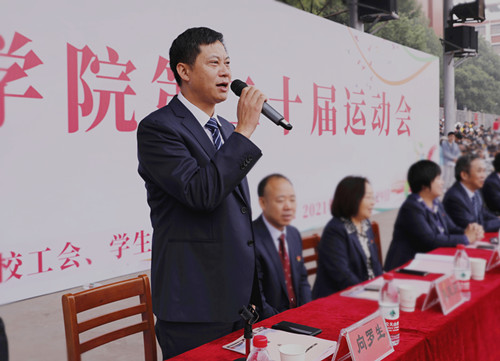 我校校长向罗生宣布第二十届校运动会正式开幕