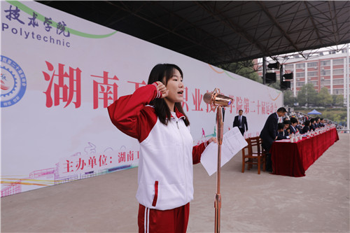 随后,电气工程学院工网2019-3班宋嘉慧代表运动员宣誓,体育艺术部老师侯勇代表裁判员宣誓。